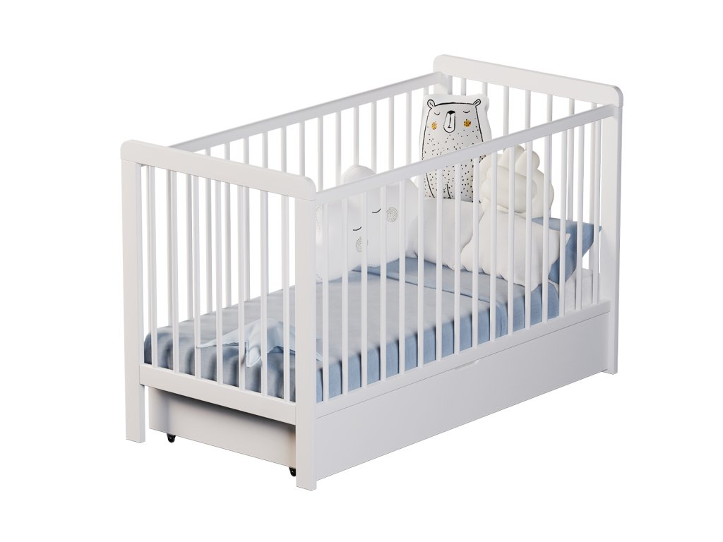 Dětská postýlka Basic 120x60 pod značkou navržená pod naší značkou BonyBon se třemi vyjímatelnými příčkami a třemi úrovněmi nastavení dna nabízí praktické a bezpečné řešení pro vaše dítě. Postýlku lze doplnit o šuplík, který poskytuje další úložný prostor pro potřebné dětské věci. Matrace není součástí (je třeba ji dokoupit), rozměr: 120x60.